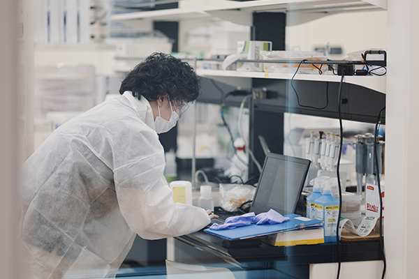 プロセス開発部に所属している石川さん。おもにmRNA製造に用いる原材料の一つである『L.DNA』の製造・開発を担当している。mRNAの品質を左右する原材料や製造機械の選定なども任されている重要なポジションだ。